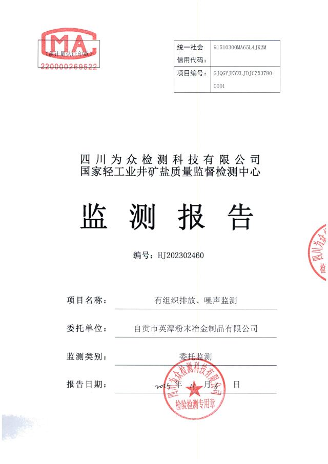 自贡市英潭粉末冶金制品有限公司2022年监测报告